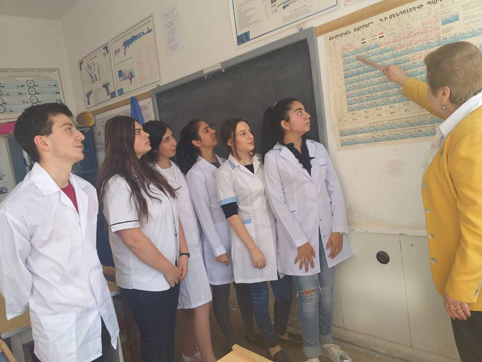 Մեհրաբյանի անվան բժշկական ինստիտուտի բժշկական քոլեջի I կուրսի ուսանողները դասախոս Գ. Զ. Մացակյանի գլխավորությամբ բաց դաս անցկացրեցին Մնջոյանի անվան ՆՕՔ-ի գիտահետազոտական ինստիտուտի “Դեղանյութերի սինթեզի” լաբորատորիայում: Ուսանողները ծանոթացան Ս. Հ. Ղազարյանի ղեկավարած լաբորատորիայում օգտագործվող նյութերի, փորձանոթների, կատարվող փորցի՝մասնավորապես  նատրիումի հիդրօքսիդի (NaOH) ստացման պրոցեսին, քարշիչ պահարանի տակ կատարվող գիտական փորձի, ջրի թորման սարքի աշխատանքի հետ: Կատարվեցին նաև որոշ նյութերի, ջրային լուծույթների  հիմնայնության և թթվայնության որոշումը մետիլօրանժային ինդիկատորի միջոցով: